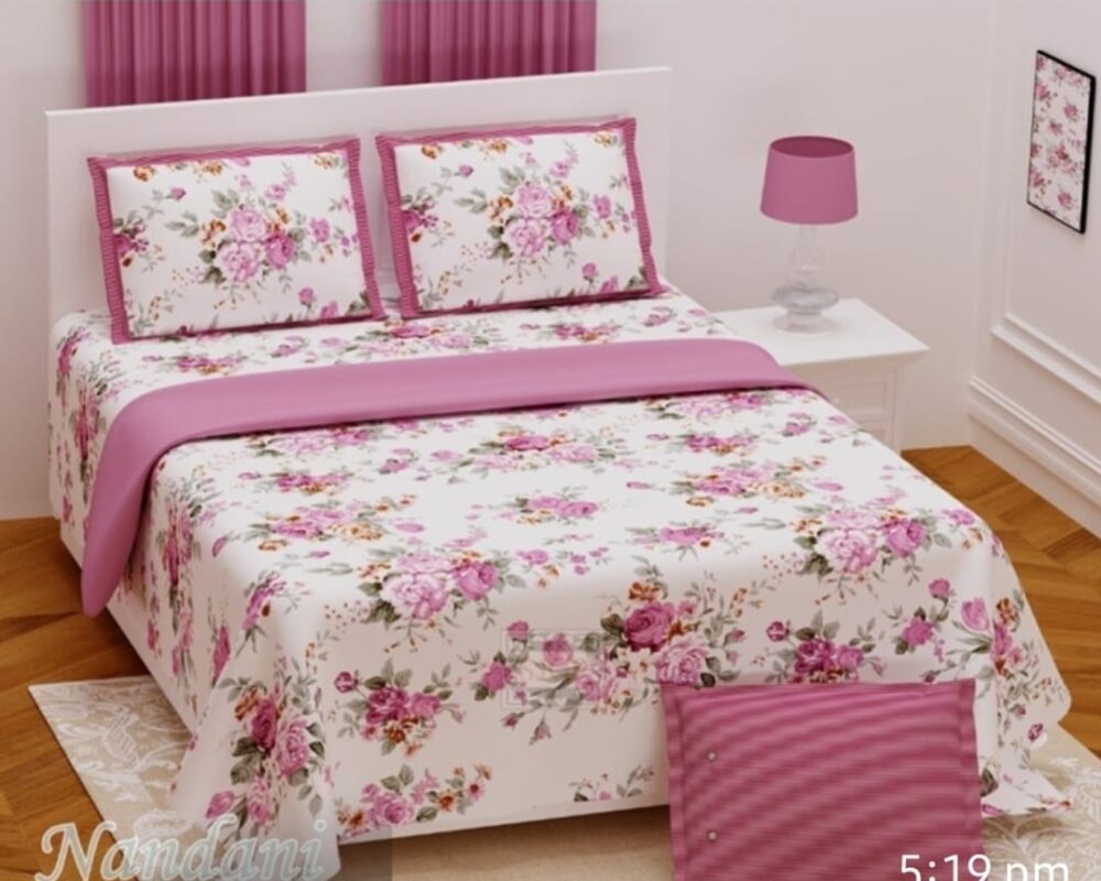 Jaipuri Cotton Double Bed Sheet – Nandani Floral Design With 2 Pillow Covers